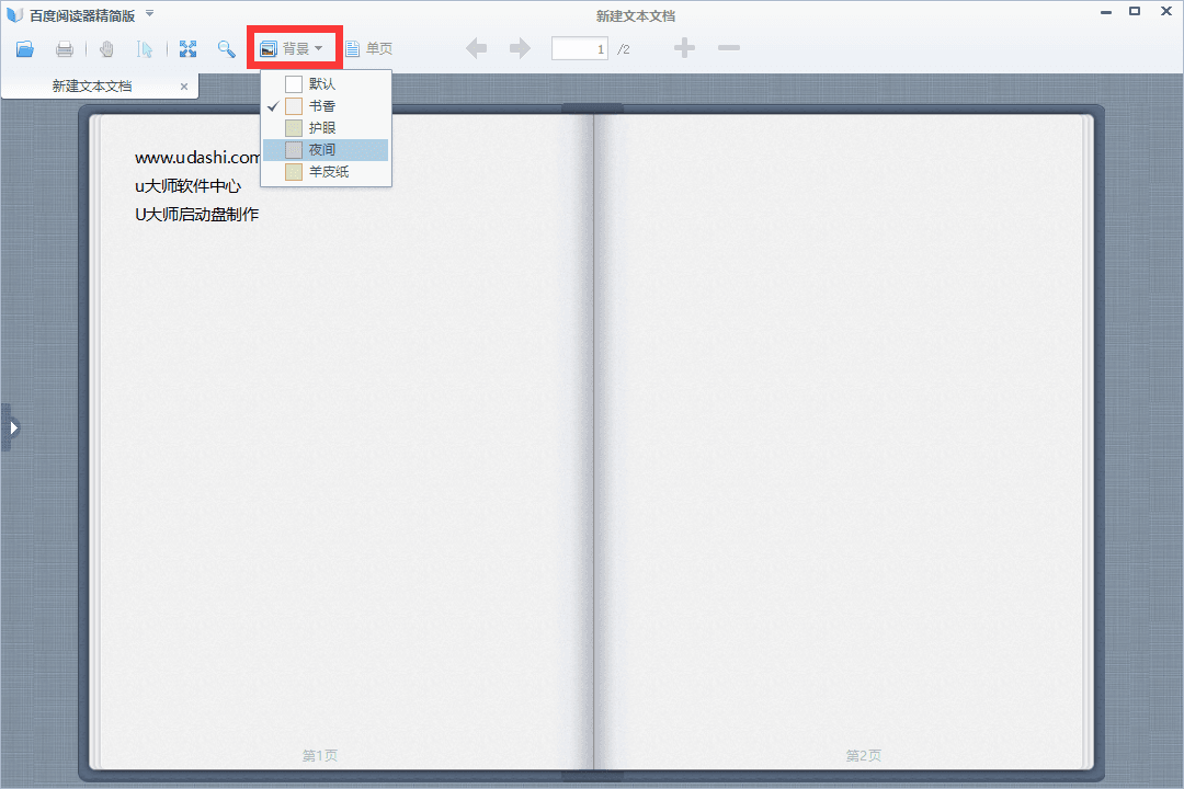 随意打开一个文本文件,选择菜单栏的背景就可以快速的对阅读背景进行修改