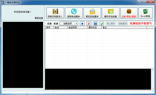 小巍电话通知宝是一款多功能的手机群发助手,使用起来非常方便,只需将手机与电脑连接即可轻松完成群发操作。支持群拨号码(按顺序自动拨打电话)、群发短信、自由录音、自动播放等实用功能,常用于公司内部消息通知或者企业产品宣传。(短信及通话产生费用由手机sim卡上支付。)