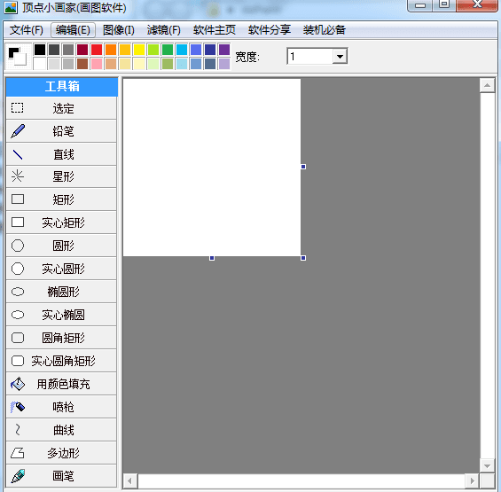 顶点小画家是一款体积小巧但功能丰富的画图工具,软件的工具栏中有选定、铅笔、直线、星形、矩形、颜色填充、喷枪 、画笔等多项常用画图小工具。除此之外,软件还自带了众多滤镜效果:羽化、渲染、锐化等,简单好用。