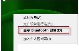 1、右键右下角的蓝牙图标单击显示Bluetooth设备;