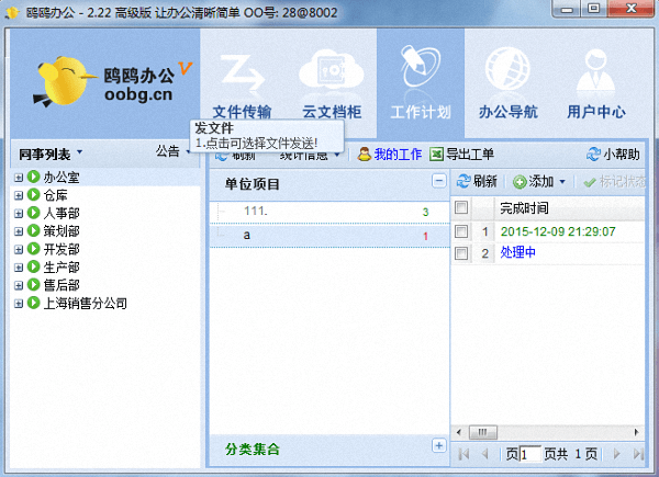 鸥鸥办公专为团队网络协作设计,可以一键高速传文件,一键共享文件给同事,是企业办公和团队协调的首选办公软件。