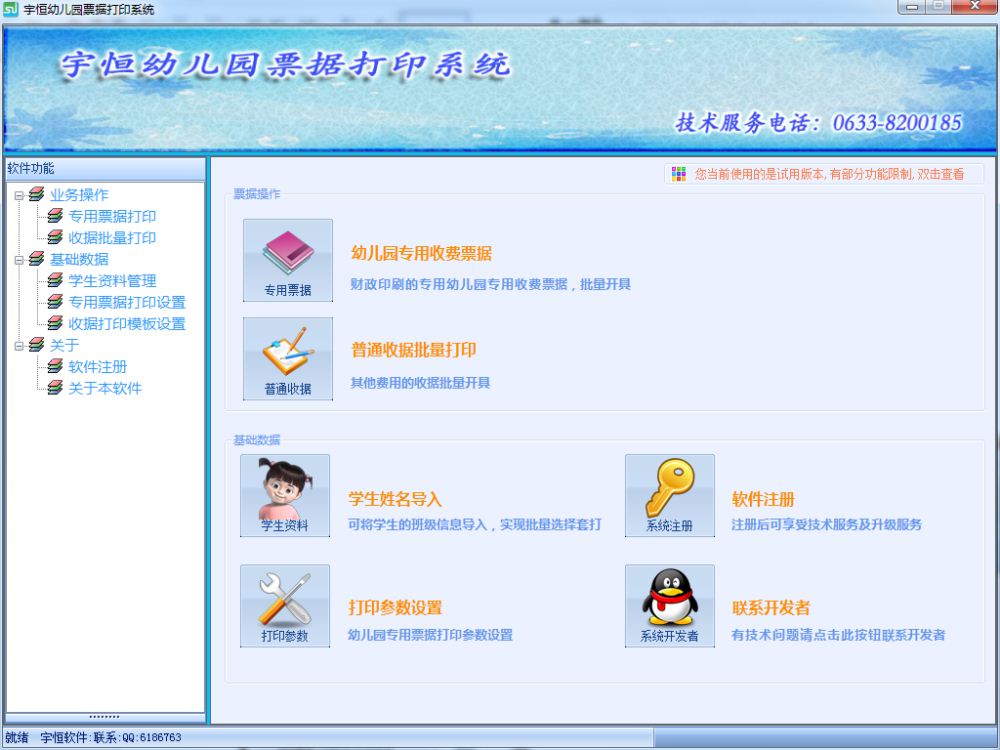 宇恒幼儿园票据打印系统拥有人性化的操作界面和强大的票据打印管理功能,支持幼儿园专用收费票据的参数设置和打印操作。