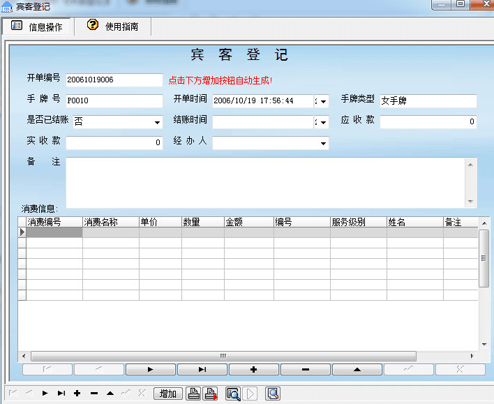 宏达洗浴管理系统是一款实用的洗浴管理工具,功能十分丰富,具有基础信息、宾客登记、账目统计三大菜单,您可以方便的进行报表输出、小票输出、消费汇总等操作。软件界面简洁直观,选择相应的菜单即可操作。