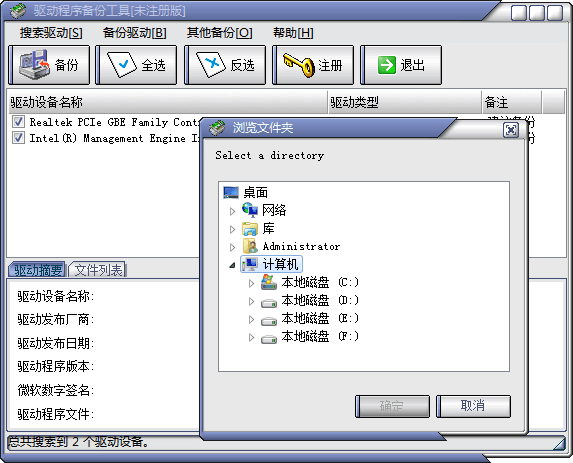 “驱动程序备份工具”是系统支持和管理人员的得力助手,在重装电脑系统前,您可以先使用这款工具软件将电脑中的驱动程序备份到您指定的位置,待系统重装执行到硬件安装这一步骤时,您可以将Windows安装程序搜索驱动的路径指向您备份的驱动程序所在路径,即可快速完成各种硬件设备的驱动安装工作。