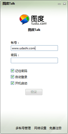1.支持自动登录,如果您是在在家或者办公场所使用图度Talk软件,但是不想总是登录时输入帐号密码那么麻烦。图度Talk是支持自动登录的,只要你把菜单——系统设置——常规设置中“启动后自动登录”项勾选即可