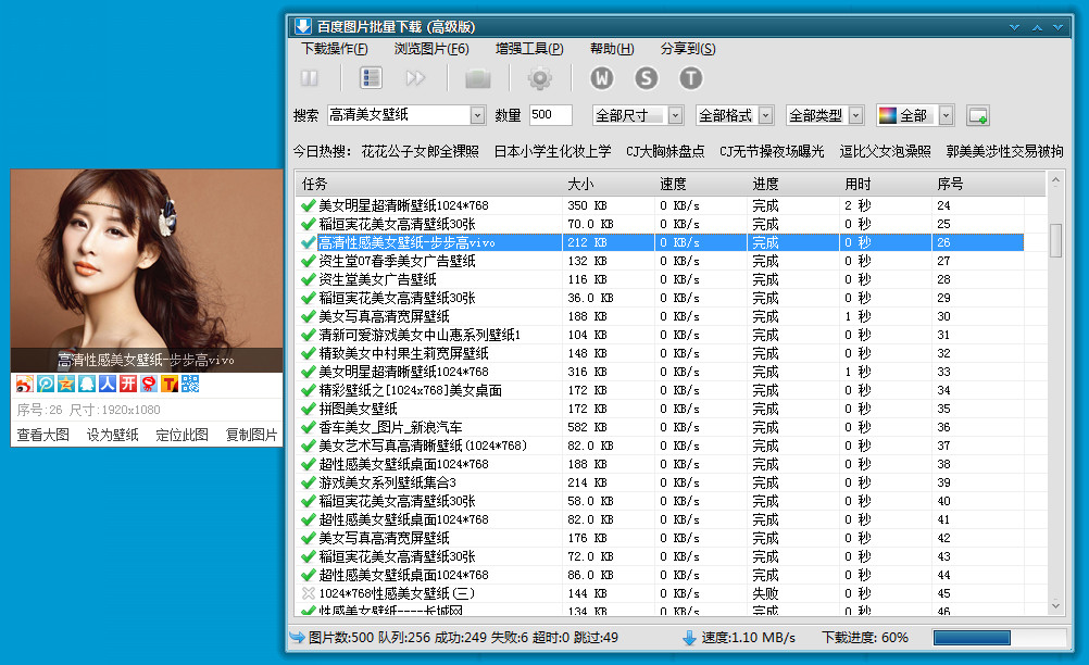 百度图片批量下载是一款小巧功能强大的图片下载的应用软件,它可以根据关键字批量下载百度图片,软件会自动识别和跳过已经下载过的图片,不会下载重复图片。云端智能更新图片检索规则,保证软件能长期稳定可用。