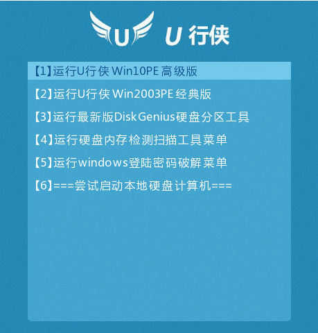 2、进入U行侠主菜单界面后,选择 “【01】运行U行侠 Win10PE系统” 选项,之后按 ”回车键” 进入U行侠PE系统