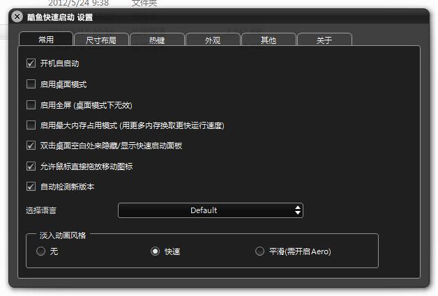 全屏、大图标、支持文件夹分类、多屏、流畅;打开快捷方式时候的放大特效,及其选项;菜单"添加--窗口模式",在窗口模式下可以方便的从其他地方拖文件或文件夹来添加进快速启动;右键菜单增加 "添加--网址" 的菜单,可以用来添加网址;支持直接拖网址到酷鱼快速启动上来新建快捷方式;快捷方式的路径里面直接输入网址即可用来打开网页。