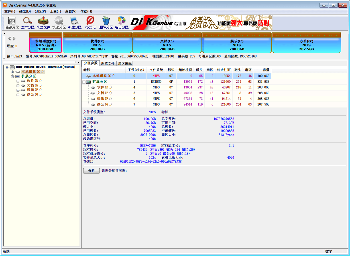 DiskGenius 是一款专业级的数据恢复软件,算法精湛、功能强大!支持多种情况下的文件丢失、分区丢失恢复;支持文件预览;支持扇区编辑、RAID恢复等高级数据恢复功能。