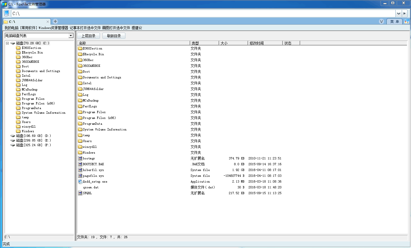 FoxFile文件管理器是一款简单实用的文件管理软件。它与Windows资源管理器有相同的功能,可以对电脑内的文件进行查找审阅,修改编辑,移动删除等方面的管理。同时,软件具有多页面功能,可以同时打开多个文件夹,方便用户操作,欢迎下载试用!