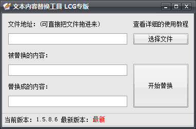 文本内容替换工具LCG专版(文本内容替换软件)是一款简单易于使用能够帮助用户进行文本内容替换软件。该软件操作简单,支持文本查找、批量查找、替换、批量替换等各种处理,可以帮助用户快速进行替换需要的文本内容。平时写个论文或者想批量修改替换文档内容的时候,一个一个去修改改会很浪费时间,也许这款文本内容替换工具LCG专版可以帮到你,它可以批量帮你替换文档内容,软件绿色无安装无注册,操作简单。